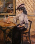 2009Meisje in cafe is een kleurstudie, met een schilderij van Isaac Israels als voorbeeld.