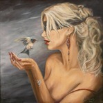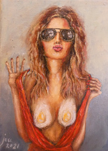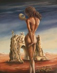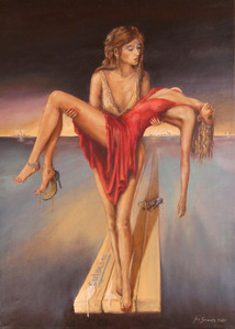 2016Olie verf schilderij op doek. Uitgangspunt van dit schilderij is een schets van Dali, Gradiva genaamd. Ik heb er een schilderij van gemaakt.