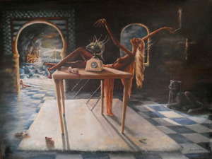 2014Kopie van het schilderij le Moment Sublime van Dali. Olieverf op doek