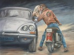 2013Meisje in Citroen ID ontmoet vriend op motor.